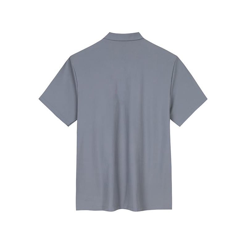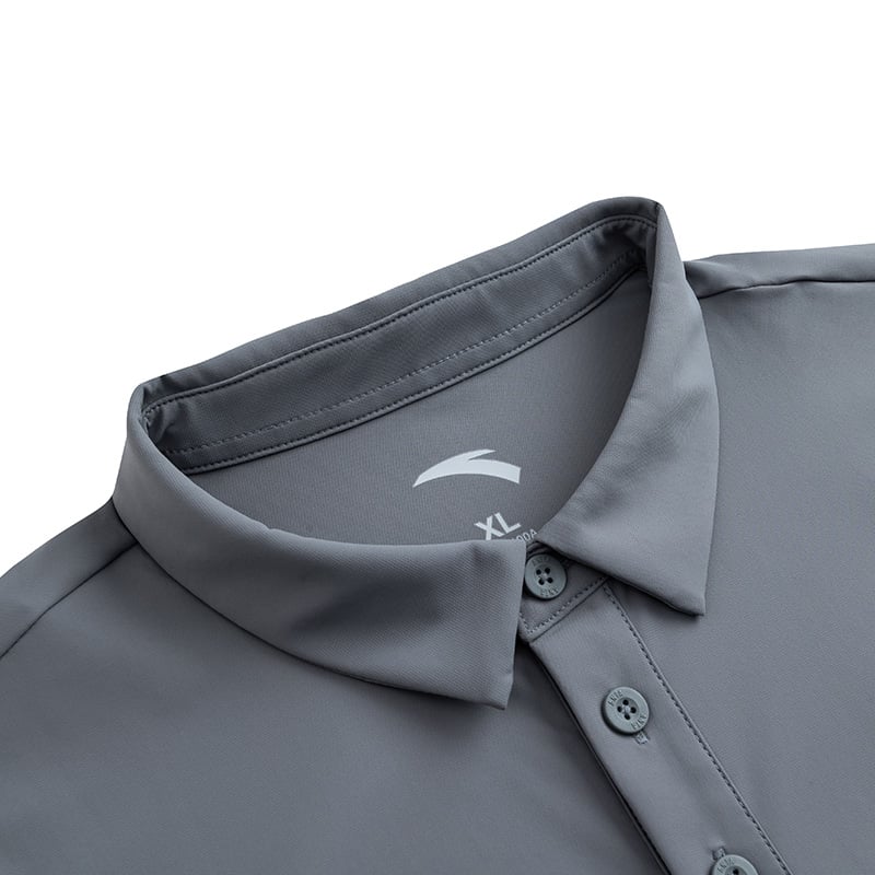 Cổ bẻ polo cổ điển kết hợp hàng cúc gọn gàng.
