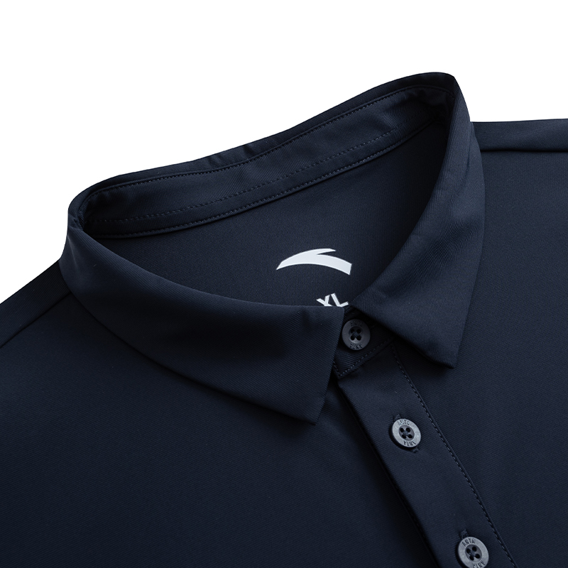 Cổ bẻ polo cổ điển kết hợp hàng cúc gọn gàng.