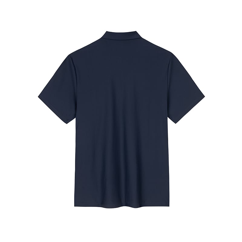 Cổ bẻ polo cổ điển kết hợp hàng cúc gọn gàng.