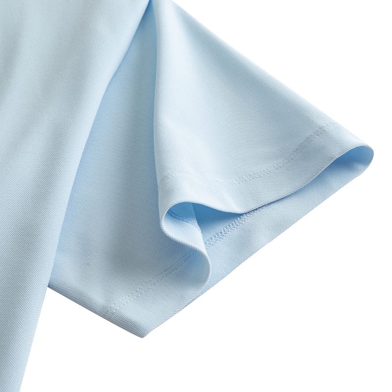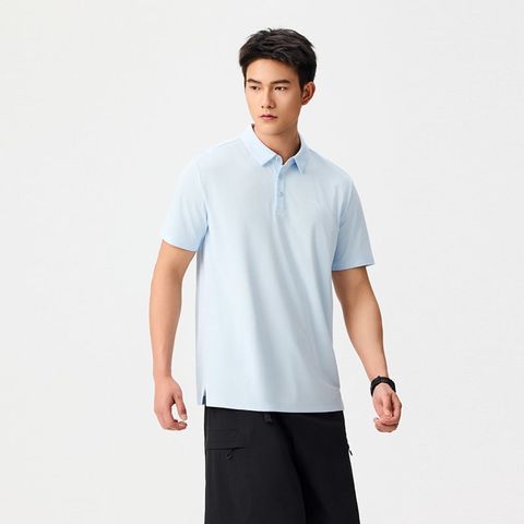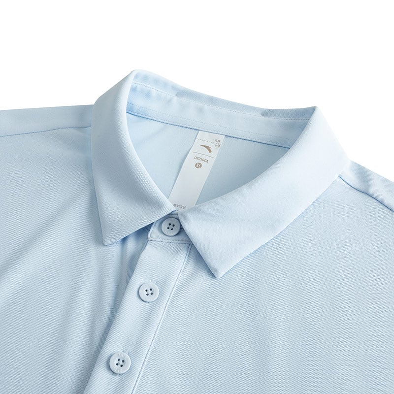 Cổ bẻ polo cổ điển kết hợp hàng cúc gọn gàng.