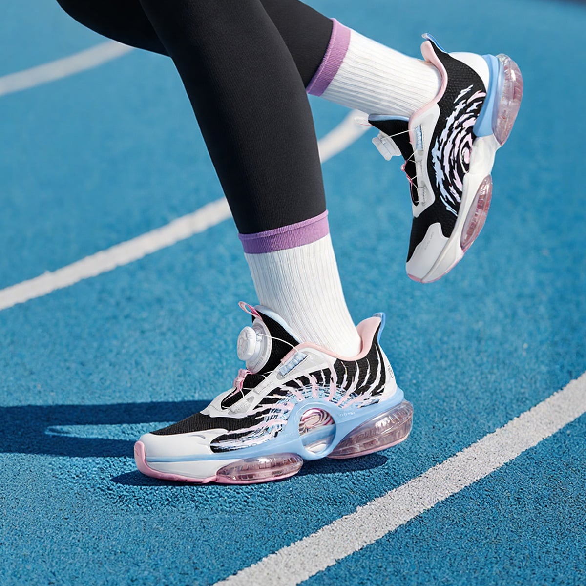 - Chất liệu bề mặt: MESH/TPU. Đế giày: TPU/RB/EVA