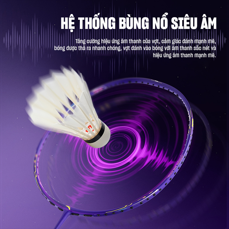Hệ thống siêu âm: Tăng cường hiệu ứng âm thanh khi vợt chạm cầu, tạo cảm giác đánh chắc chắn, tốc độ ra cầu nhanh và âm thanh vang dội cuốn hút.